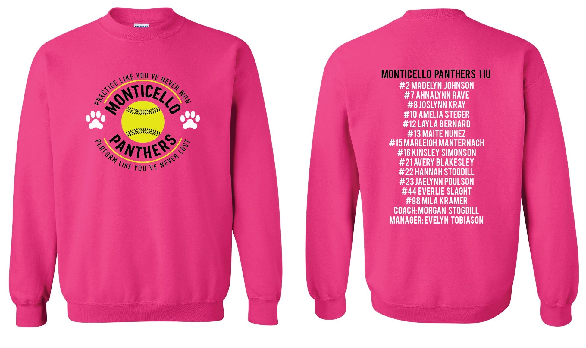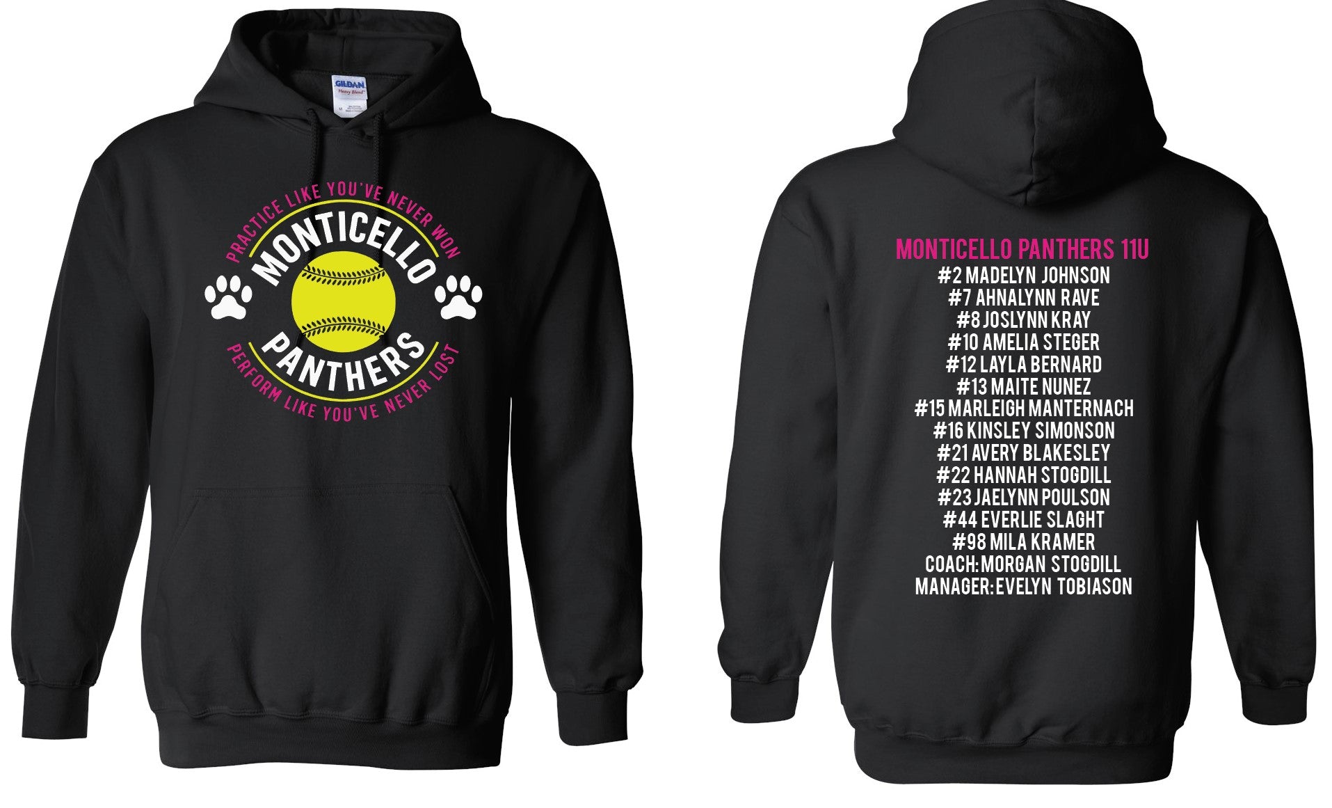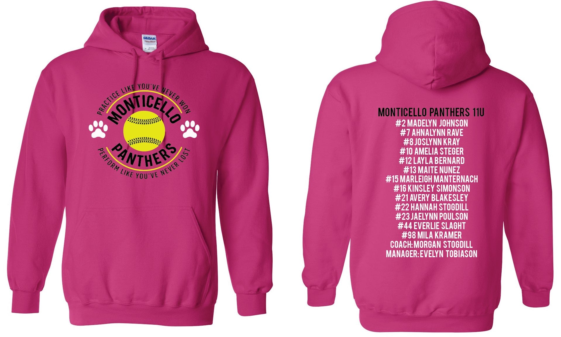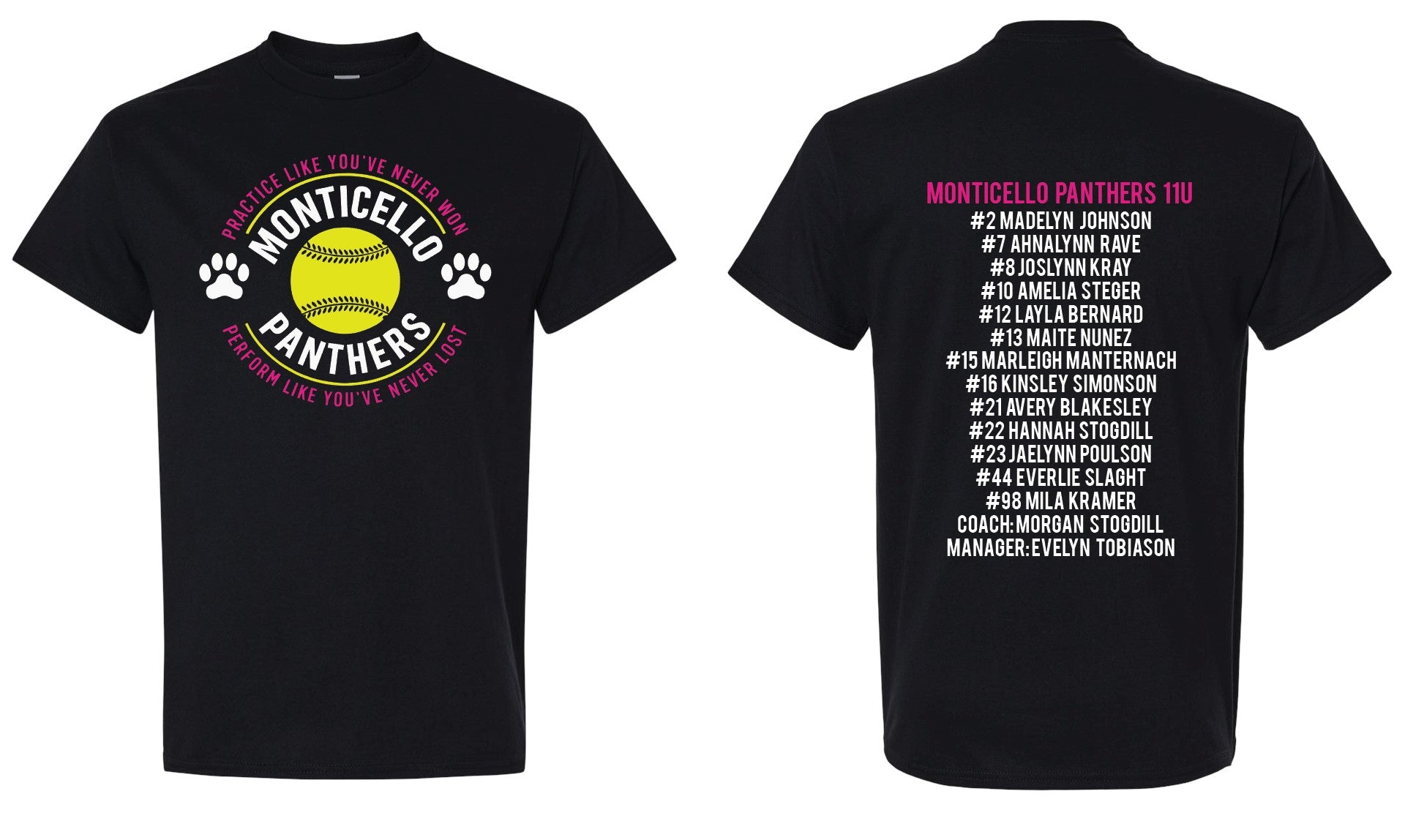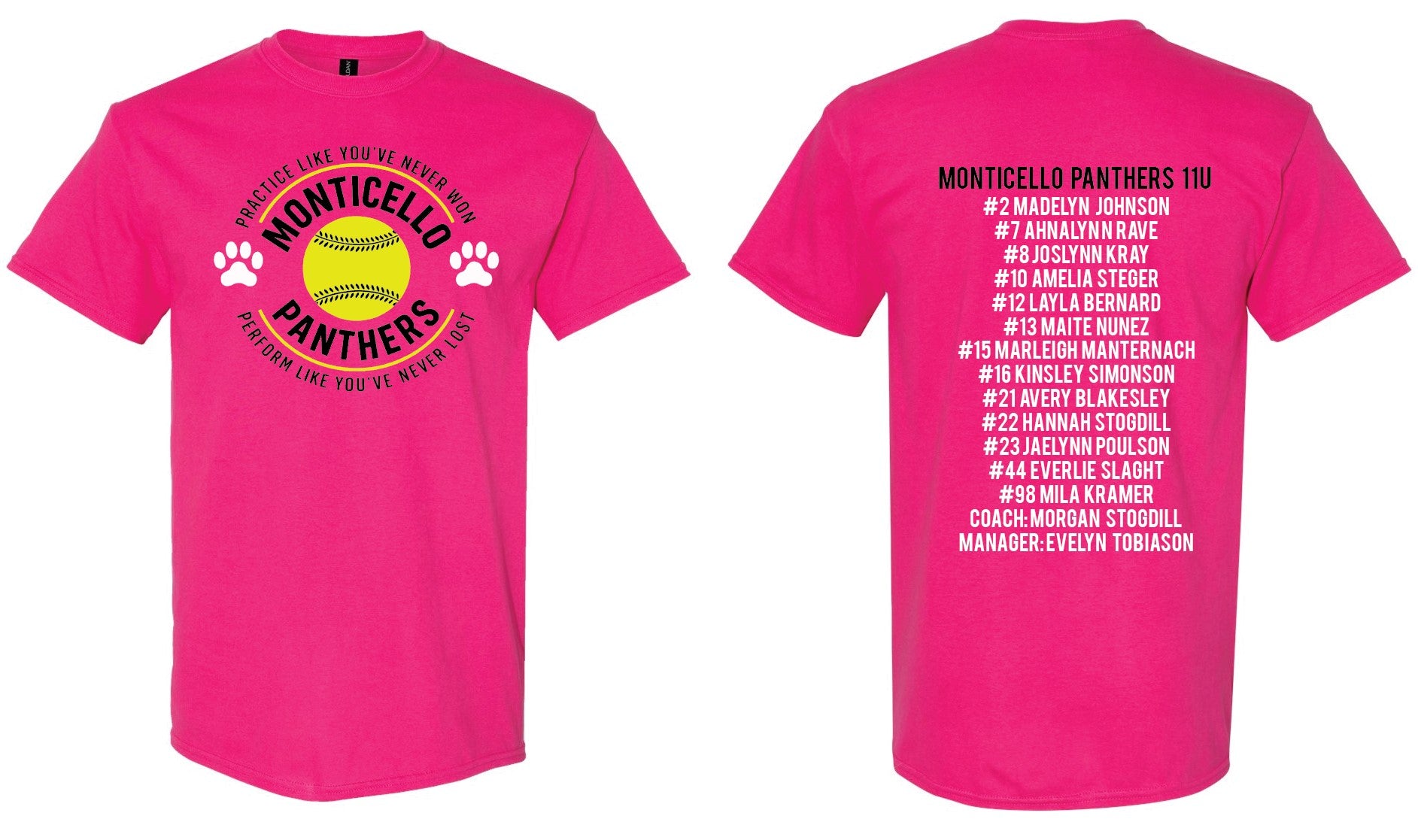 Team Roster & Numbers listed on the back